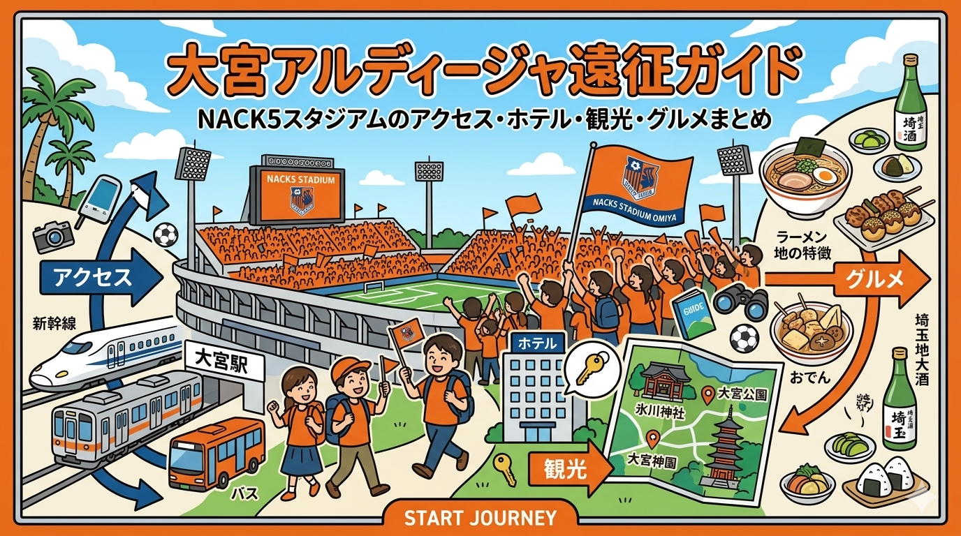 大宮アルディージャ遠征ガイド|NACK5スタジアムのアクセス・ホテル・観光・グルメまとめ