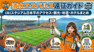 清水エスパルスのアウェイ遠征を徹底解説。IAIスタジアム日本平へのアクセス(バス・電車)、帰りの混雑対策、観戦のコツ、周辺グルメ・観光、地酒、おすすめホテルまで初心者にも分かりやすくまとめました。